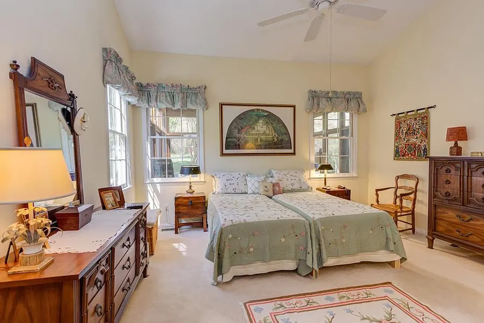 This light-filled, meticulously maintained unfurnished home is seeking a responsible tenant who will appreciate its care and comfort. The property features vaulted ceilings, four bedrooms (including a first-floor primary suite), two and a half baths, and a two-car garage. Enjoy a spacious three-season screened porch with a swing, as well as a beautiful new deck overlooking two acres of shared community green space.